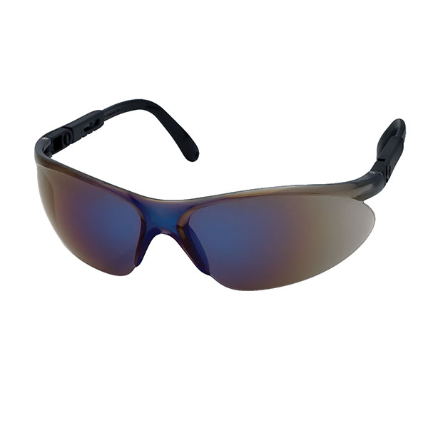 Features a molded-in nosepiece, ratchet articulating temples arms along with telescoping temple arms provide a custom fit for a wide variety of face shapes and sizes. Impact resistant polycarbonate lens provides 99.9% UV protection.