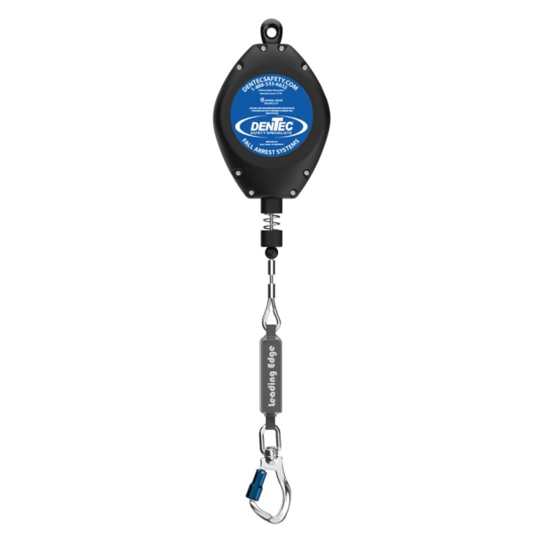 Leading Edge Self-Retracting Devices: Are suitable for applications where the lifeline remains generally horizontal during use, and free fall is limited to 1.5 m (5 ft). Leading Edge refers to unprotected and potentially sharp edges of roofs, doors, decking, etc. These units have an integrally attached shock absorber, which minimizes fall arrest forces on the user and withstands impact loading of the lifeline over sharp or abrasive edges during a fall event