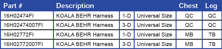 • Available with Single D-Ring, or 3 D-Ring configurations.