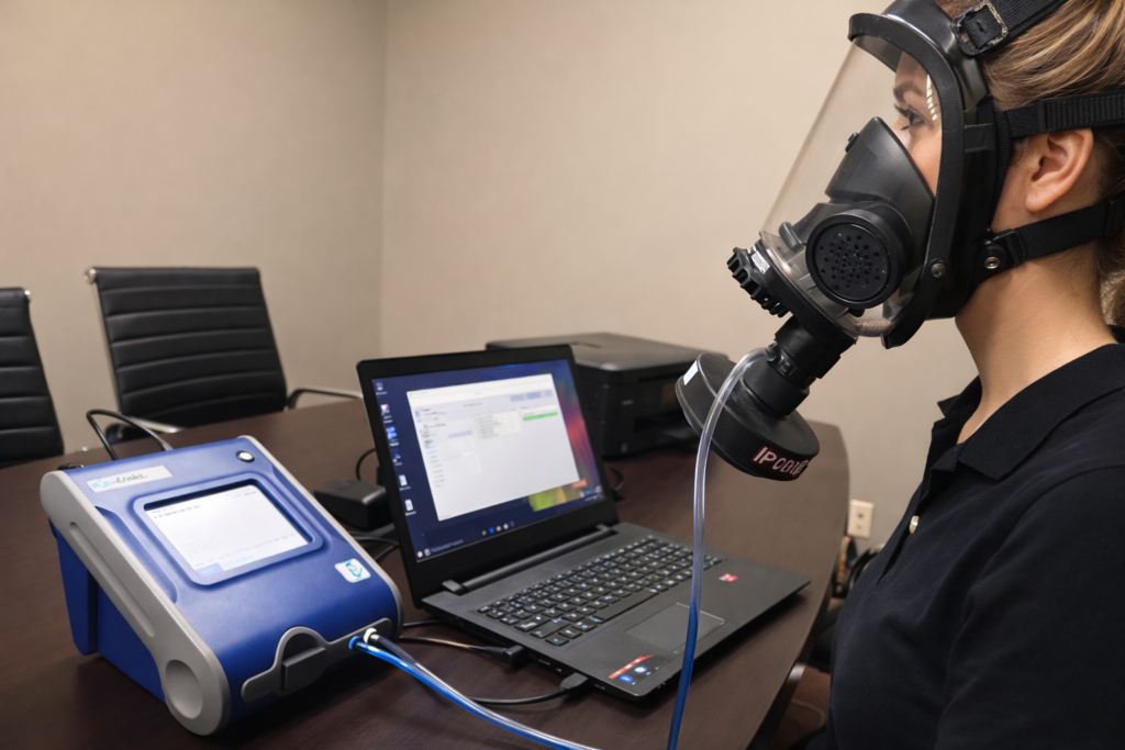Mask-Fit Testing ensures that participants are wearing the proper mask size and type for the shape of their face and head.
